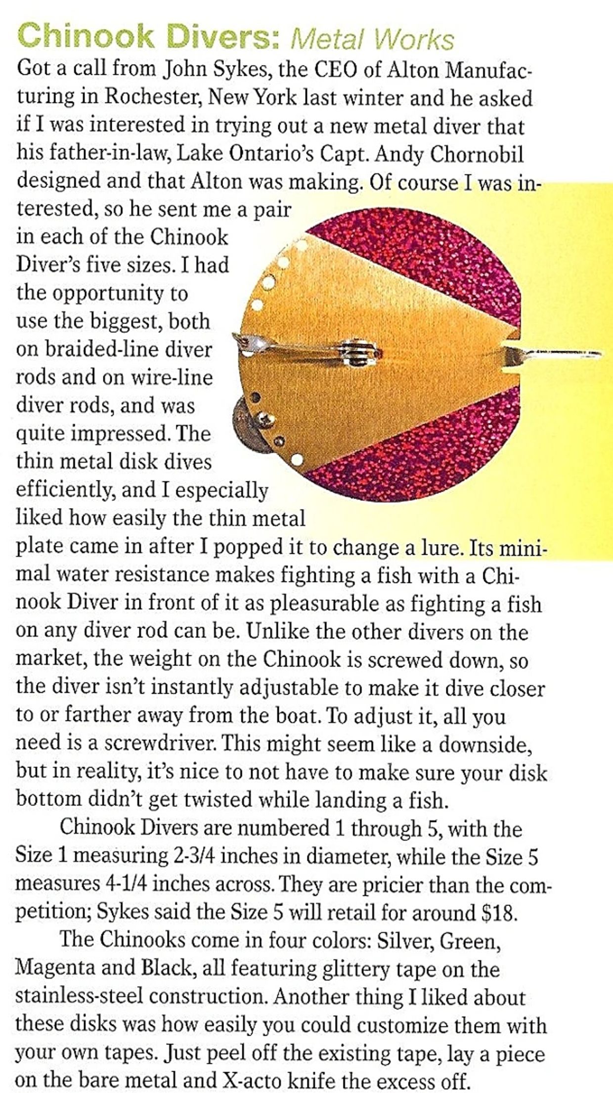 OUTDOORS:  New Sinker spells S-U-C-C-E-S-S  An article by Chris Kenyon July 17, 2016